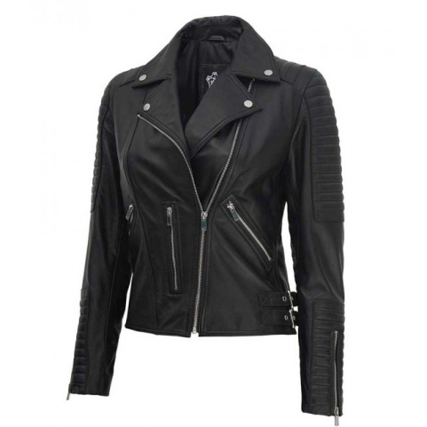 Black Leather Moto Jacket Women’s ZILG-137